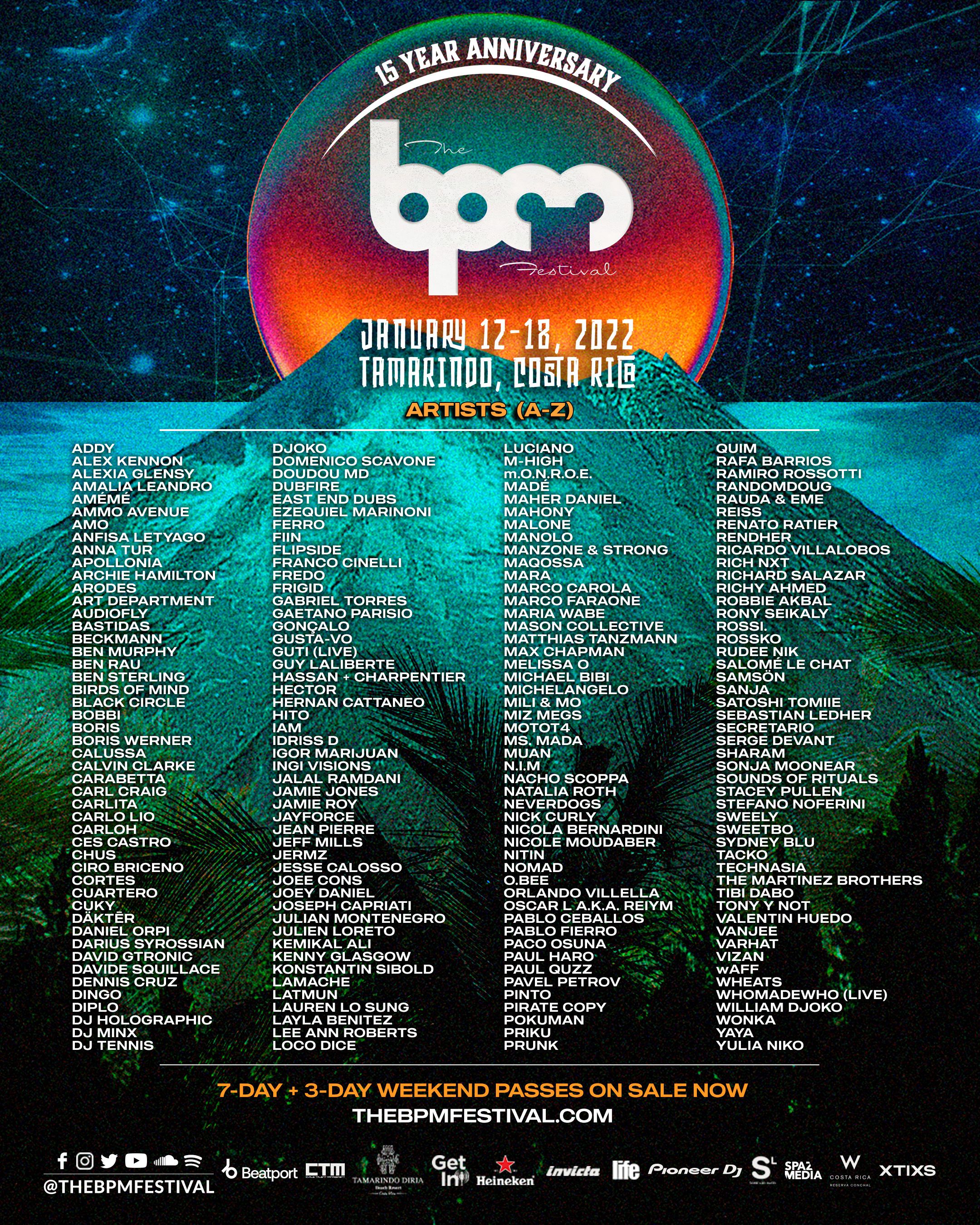 The BPM Festival: Costa Rica presenta la segunda fase de su lineup para su esperada edición de 15to aniversario, a realizarse del 12 al 18 de enero del 2022 en Tamarindo, Guanacaste. BPM le da la bienvenida a más de 80 nuevos artistas a su cartelera en un evento que se extiende por una semana. Para los interesados en asistir al festival, ya pueden conseguir sus pases de 3 y 7 días en la página web TheBPMFestival.com.
