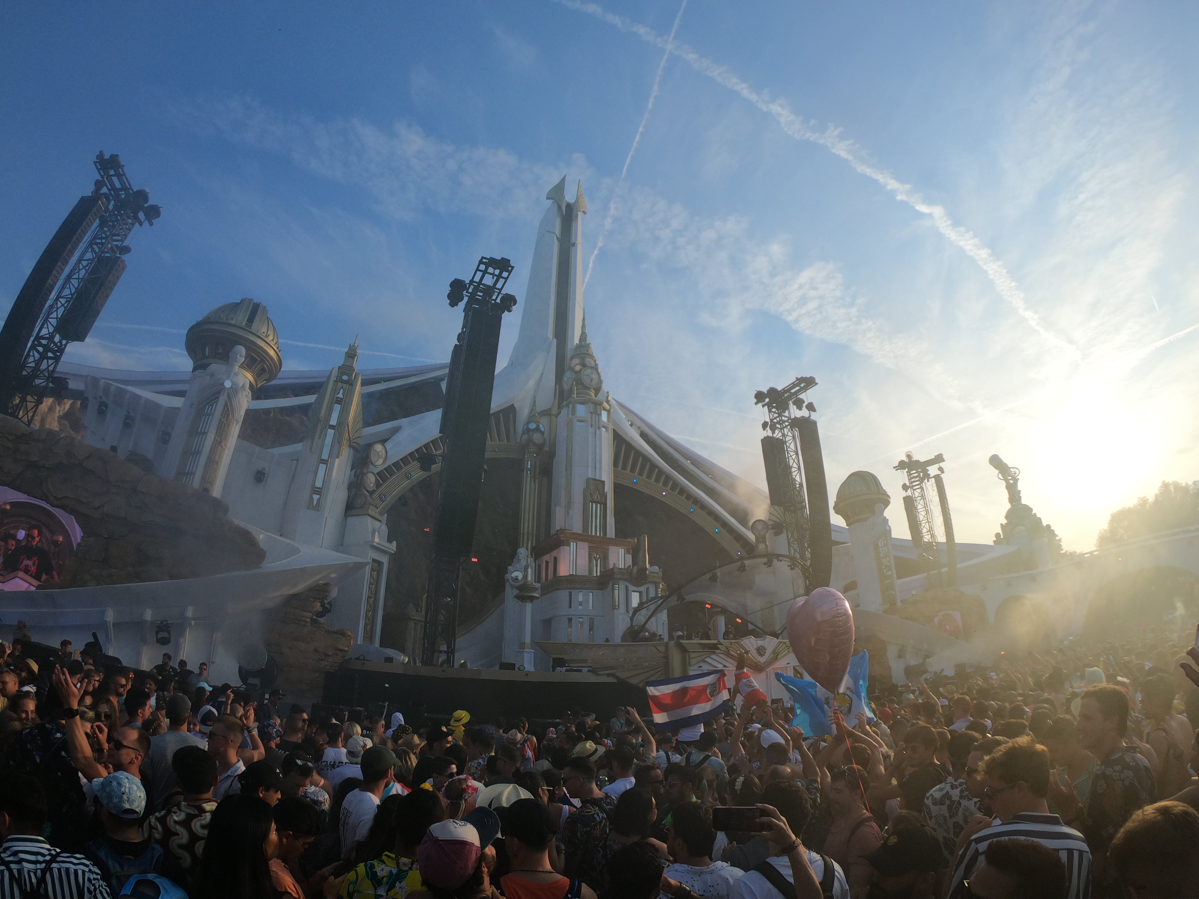 Una nueva mañana y un día muy especial estaba por iniciar. Eso si primero a desayunar, tomar mucha agua y bañarse. En el Dreamville puedes tomar un baño en duchas exteriores que no te cobran adicionalmente o puedes pagar 1 perla (1.4 euros) para entrar a las duchas bajo techo. Algo que me llamo la atención y fue una satisfacción total es la limpieza de los baños, los cuales están limpios a toda hora y en total funcionamiento, ya sea en el camping o dentro del festival. Frescos, limpios y con el outfit puesto fui rumbo al ingreso al festival. Las filas pueden parecer largas, pero siempre hay buen ritmo, orden y por supuesto buena vibra. ¡Entramos! Estar dentro del festival luego de una espera tan larga parecía utópico. Luego de caminar unos metros ahí estaba, el Mainstage de Tomorrowland, ¡Impresionante! Cada detalle del escenario está finamente terminado. Ese sería el templo de los campos sagrados en el cual iba a disfrutar de espectaculares presentaciones. Muy emocionado fui a ver el final del primer set del festival, uno por Jamie Jones.