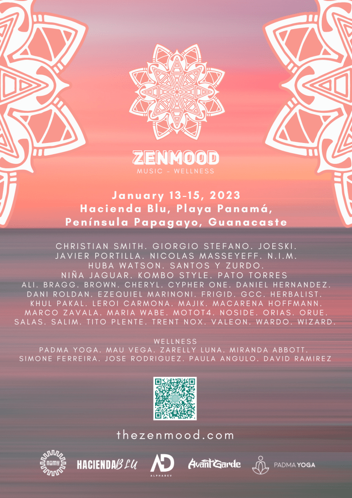 En la Península de Papagayo, a 5 minutos de Playa Hermosa y 10 minutos del Playas del Coco se llevará a cabo el festival ZenMood, el cual integra wellness (Yoga, Cuencos Cantores, Ayurveda, Danza y Talleres de Música) con música en vivo y DJ sets.