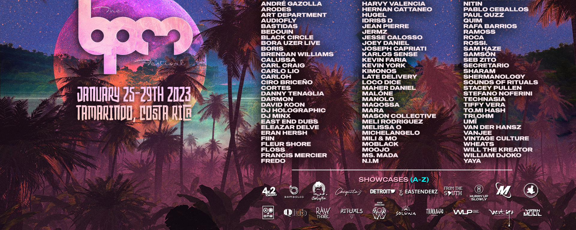 Los showcases recientemente anunciados incluyen 4×2 Toronto, Boogeyman de Jesse Calosso, el concepto Detroit Love de Carl Craig, Eastenderz de East End Dubs, Serán Bendecidos de Loco Dice y el regreso del favorito de los fanáticos YA’AHH MUUL. Luego de su exitoso debut durante la edición inaugural de BPM Canadá en 2022, Bamboleo de Neverdogs, Tamango de Yaya y Rawthentic de Carlo Lio y Nathan Barato se unirán para un showcase colectivo que dará a los invitados una muestra de lo que cada sello tiene para ofrecer. El concepto de evento experiencial de rápido crecimiento con sede en Miami, Hurry Up Slowly, y el venue Soluna con sede en Toronto, que también hicieron su debut en BPM en Toronto, presentarán sus respectivos showcases en BPM Costa Rica por primera vez. Además, el festival de 5 días contará con una selección de showcases especiales que están programadas para hacer su debut en BPM, incluido From The South, una adquisición curada desde Manchester Mason Collective’s MVSON y Qlub.