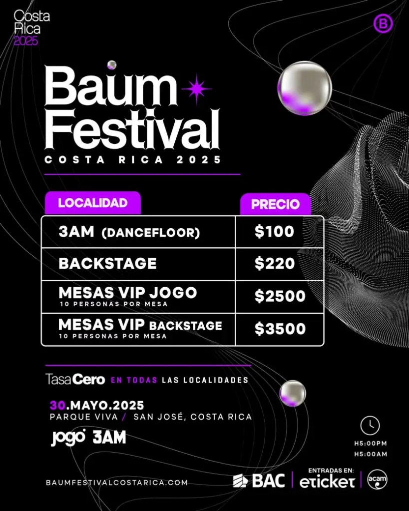 En el 2025 Costa Rica tendrá su primera edición el día viernes 30 de mayo en el Parque Viva ubicado en La Guacima de Alajuela contará con 3 distintos escenarios que estarán activos por 12 horas. Puedes comprar tus entradas en eticket.