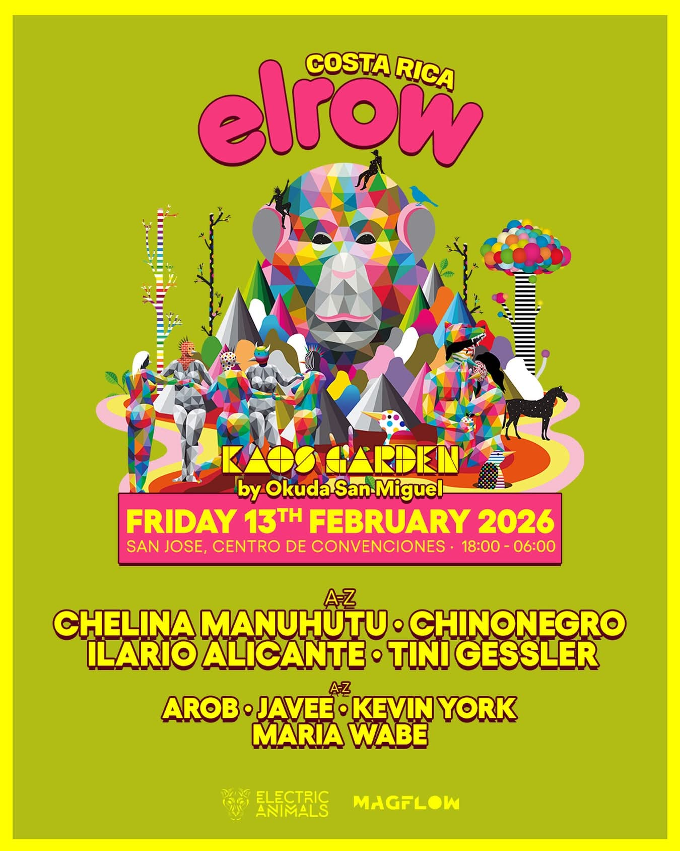 elrow Kaoz Garden se llevará a cabo el 13 de febrero del 2026 en el Centro de Convenciones de Costa Rica