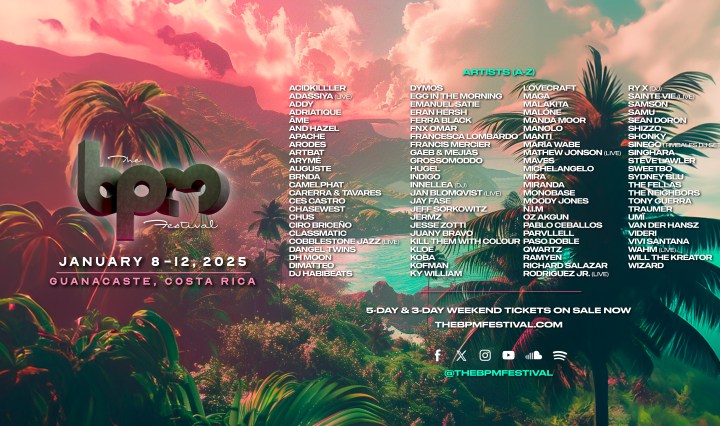 Chasewest, Classmatic, Innellea, Manda Moor, Shonky, Traumer y más se unirán a la celebración Del 8 Al 12 de enero de 2025 en Tamarindo The BPM Festival: Costa Rica 2025 extiende su edición con un anuncio monumental del lineup de … Continúa leyendo The BPM Festival 2025: Completa su lineup con el anuncio de la fase dos junto a los showcase